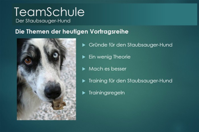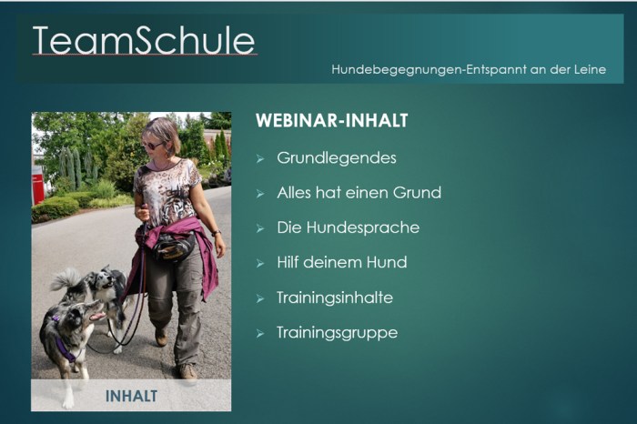 Wie es auch anders geht, erfahren Sie im 6-teiligen Basiskurs „Laufen an lockerer Leine“ in meiner Teamschule für Mensch und Hund.