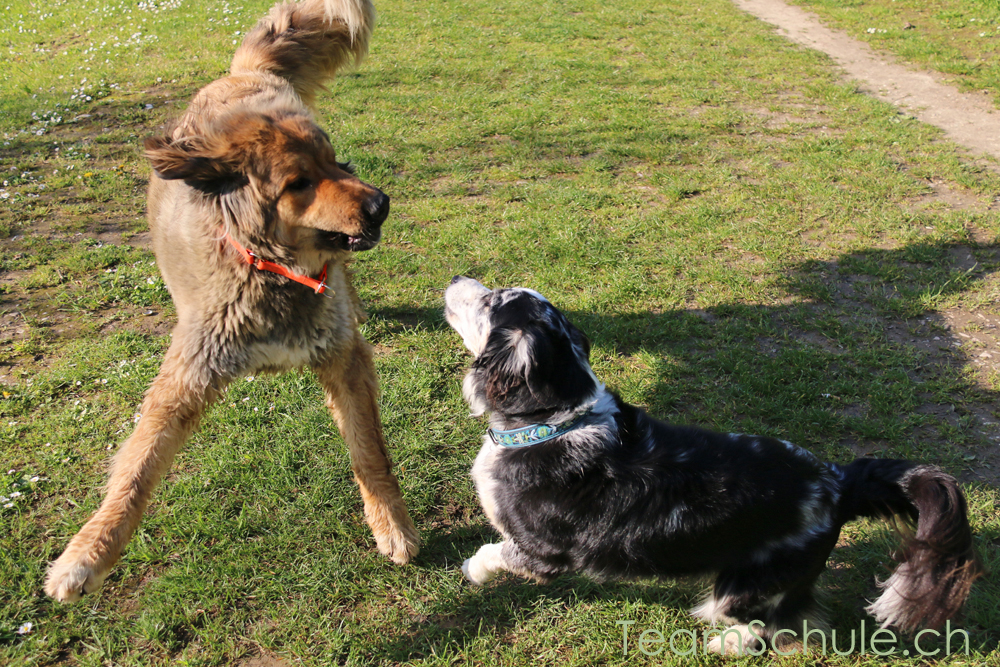 So wie hier mein älterer Rüde Jason im Video gegenüber dem jüngeren Shadow.