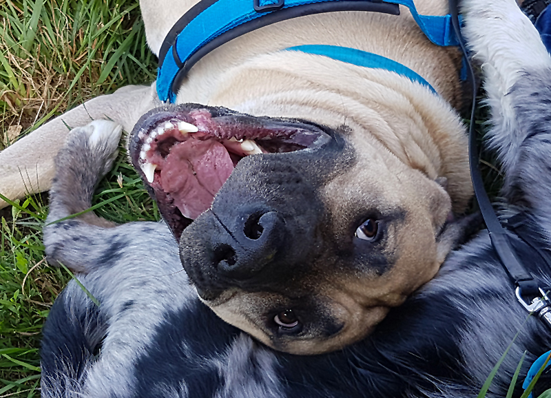Auf den ersten Blick scheint dieses Foto einen Hund mit einem Spielgesicht zu zeigen. Betrachtet man das Bild jedoch genauer, erkennt man deutlich die Unterschiede (klick dazu auf das Bild).