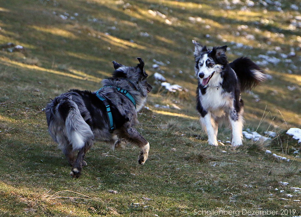 Spielerisches Verfolgen bei dem man „lachende“ Gesichter mit weichem, offenem Maul sowie lockeren Bewegungen erkennt.
