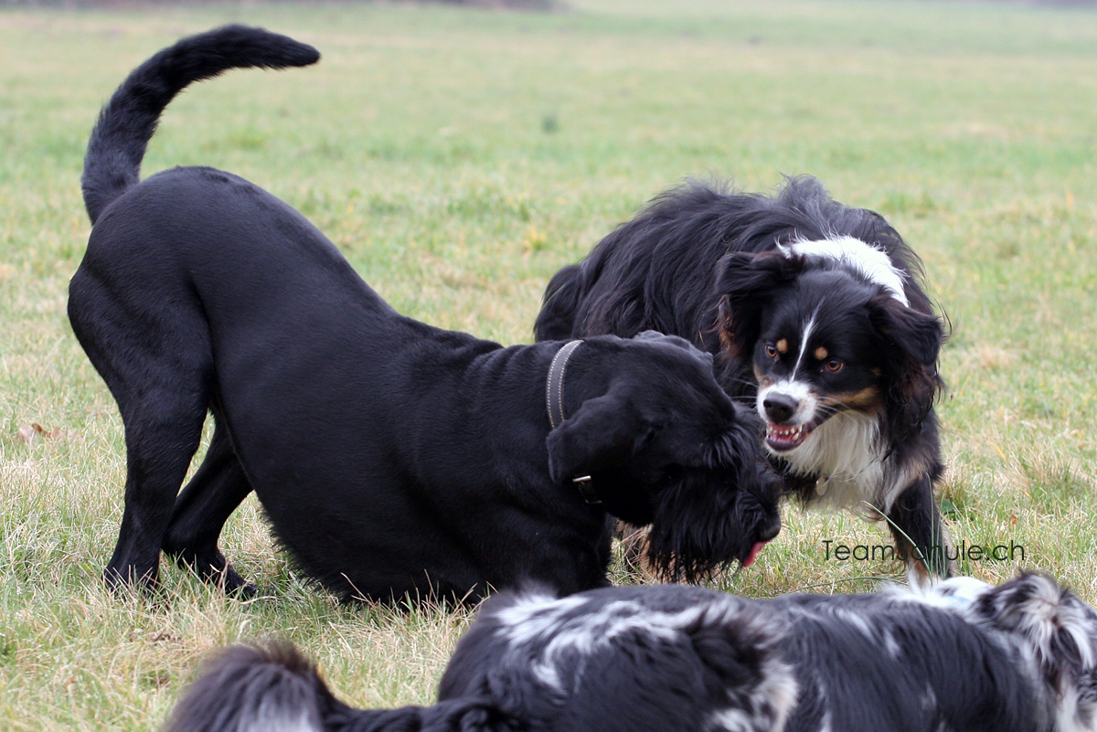 Ist die Ressource jedoch für alle Beteiligten sehr wertvoll oder bleibt einem Hund kein anderer Ausweg, wenn er bedroht wird, kann es auch mal zu einer handfesteren Auseinandersetzung kommen. Dies ist aber eher die Ausnahme.