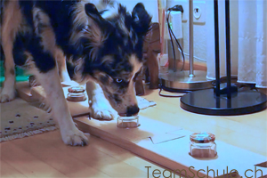 Shadow lernt als erstes ein leeres Glas mit der Nase zu berühren (Kein Video)