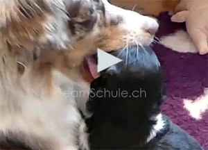 Und wer jetzt denkt das sei so, weil die Welpen ja doch noch recht jung sind, der sieht in diesem Video, dass die Anwendung auch bei älteren Welpen nicht anders ist (hier mit Tante Mooni beim Spiel und Erziehen der Welpen)