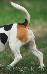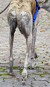 G R-Ansatz oberhalb der Rückenlinie und an den Po gezogen, Rute ist eng an das Bein gezogen, Spitze zeigt nach Aussen