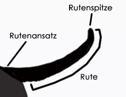 Der Begriff Rute umfasst wie bei allen Wirbeltieren auch beim Hund die Gesamtheit von Schwanzwirbeln, Muskeln, Bändern, Haut und Fell.