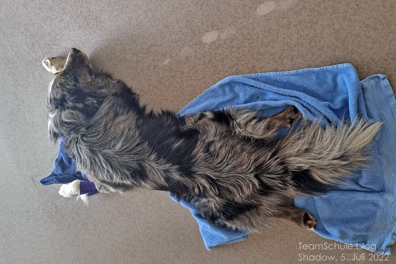 Nachdem ich den Artikel veröffentlich und Shadow mit den Grannen im Fell gezeigt habe, gab mir Jemand den Tipp, das Fell mit Glossing (zum Beispiel von Yupp) einzusprühen. So würden Grannen und Kletten gar nicht erst anhaften. Danke Claudia Schei dafür.