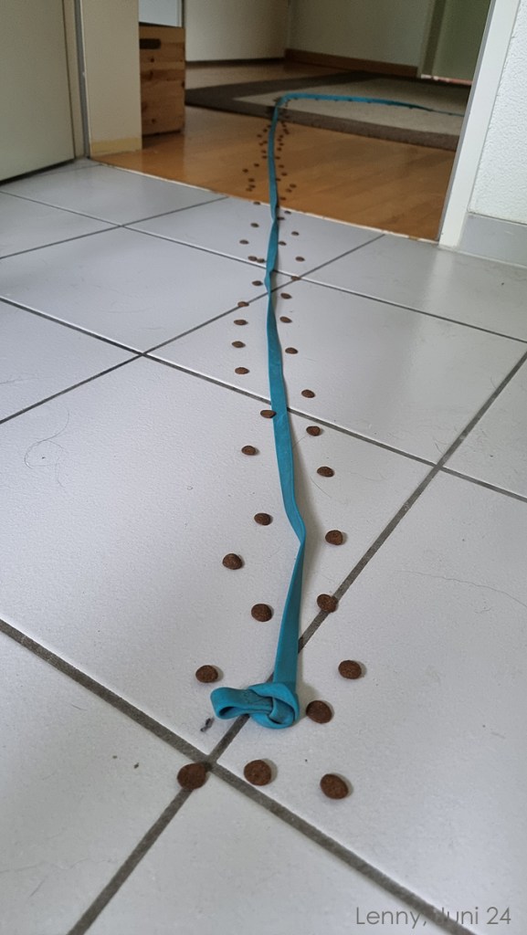 Hier siehst du die erste Futterschlange, die ich für den damals knapp 2 jährigen Lenny aufgebaut habe.