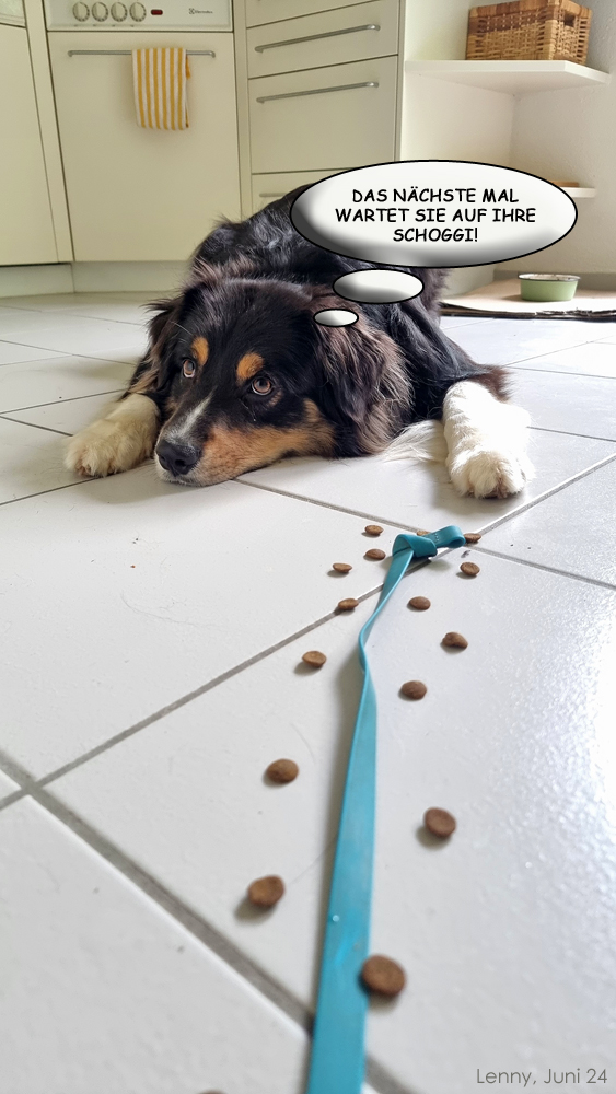 Und wie gut erst, wenn Hund auf dem Hinweg nur die Hälfte isst. Dann dauert der Spass gleich doppelt so lange.